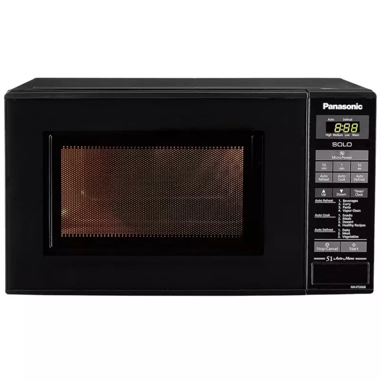 مایکروویو پاناسونیک مدل ST266B یکی از دستگاههای برند پاناسونیک میباشد که توان مصرفی مایکروویو 1250 واتی و قدرت مایکروویو 800 واتی است که با توجه به توانی که دارد قدرت و عملکرد دستگاه نیز بالا میباشد. جنس بدنه داخلی این دستگاه از اپوکسی (Epoxy) و جنس بدنه آن، فلزی است. جنس دری آن، شیشهای میباشد. دارای نمایشگر LED بوده و صفحه کنترل لمسی نیز دارد. ظرفیت فر این دستگاه،20 لیتر بوده و دارای 51 برنامه از پیش تعیین شده که شامل؛ اسنک، وعده غذای آماده، دسر و برنامه پخت سلامت میباشد. نوع کنترل مایکروویو پاناسونیک مدل ST266B لمسی است. این دستگاه گریل، کانوکشن یا فن، بخارپز، جوجه گردان و پخت ترکیبی ندارد. دارای قابلیت تنظیم قدرت بوده و دارای 5 سطح قدرت (کم – متوسط – زیاد – یخ زدایی – گرم کردن) میباشد. قابلیت گرم نگهدارنده ندارد اما دارای قابلیت یخ زدایی است. ساعت الکترونیک، تایمر و سینی چرخان نیز دارد. اندازه سینی چرخان، 255 میلی متر است و سیستم نظافت با بخار نیز دارد. این دستگاه نشانگر روشن بودن دستگاه و اعلام هشدار در پایان برنامه نیز دارد.