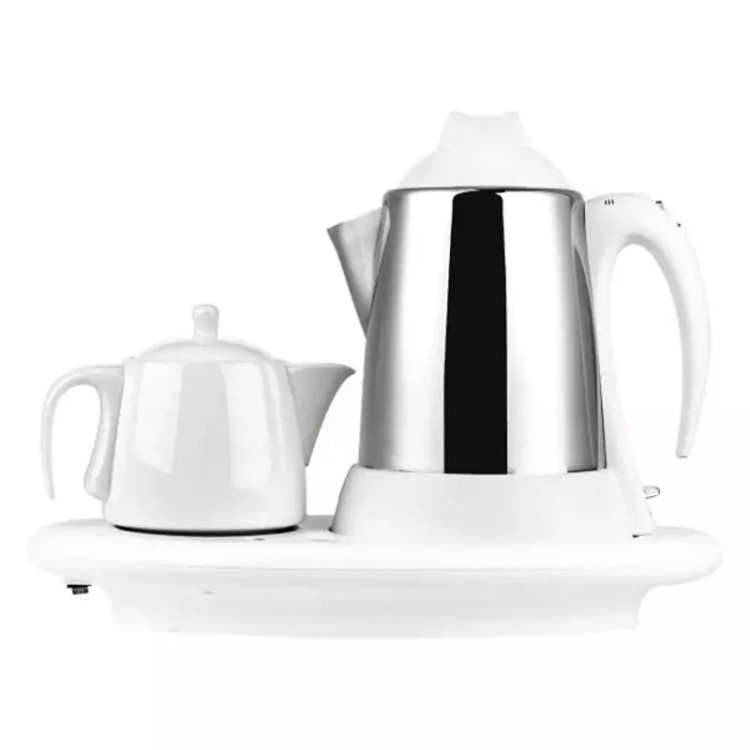 متاسفانه این کالا در حال حاضر موجود نیست. میتوانید از طریق لیست بالای صفحه، از محصولات مشابه این کالا دیدن نمایید.چایساز «پارس خزر» (Pars Khazar) مدل TM-3500SP، بسیار ساده، ارزانقیمت، مقاوم و با توان مصرفی نسبتا بالایی طراحیشده است. این محصول که دارای یک قوری چای و یک کتری است؛ با توان مصرفی 1685 وات به همراه جنس بدنهی استیل ضدزنگ طراحی و ساختهشده است. همچنین این محصول به یک صفحه گرم نگهدارنده کتری هم مجهز است. از دیگر مشخصات کلی TM-3500SP میتوان به دو کلید روشن و خاموش روی کتری و روی سینی، کلید خودکار تنظیم جوش داغ و تنظیم جوش ملایم، دارای دو ترموستات جهت المنت هنگام خشک شدن آب داخل کتری، دارای فیلتر چای ضدزنگ و قابلیت استفاده همزمان دو قوری اشاره کرد